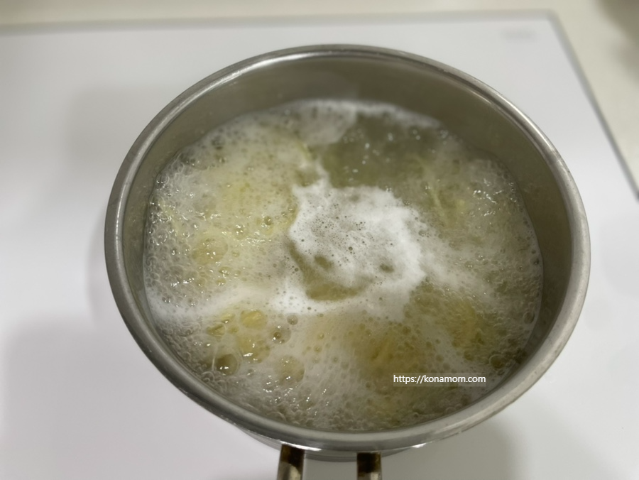 (면이 뭉치지 않도록 잘 저어야 하고 면이 퍼지지 않도록 시간을 꼭 지켜야 합니다.)