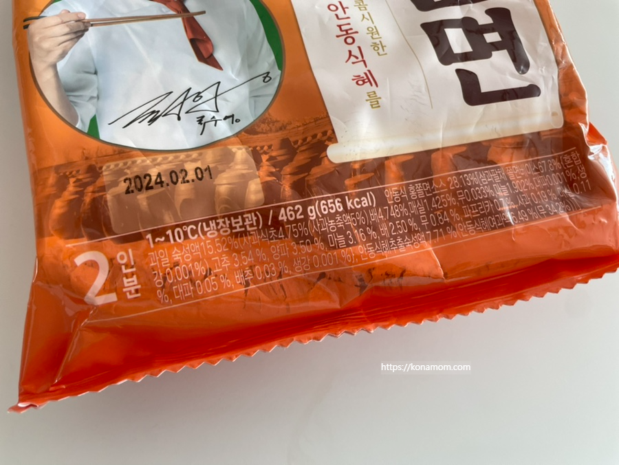 안동식 홍쫄면은 2인분으로 냉장보관해야 합니다.