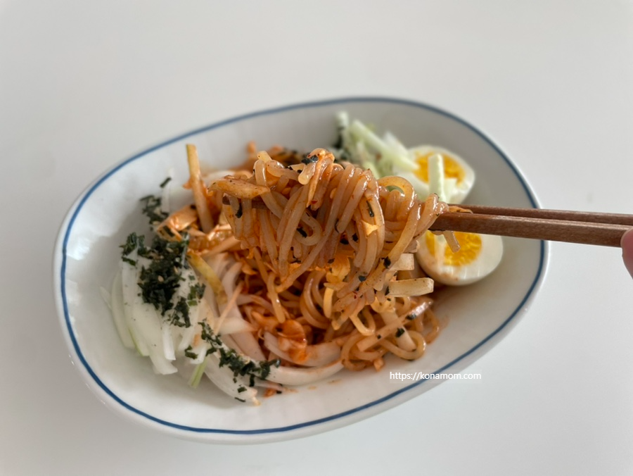 조리법은 정말 간단해요. 면만 삶아서 헹군 후 그릇에 담아 소스 뿌려서 비벼 드시면 됩니다.