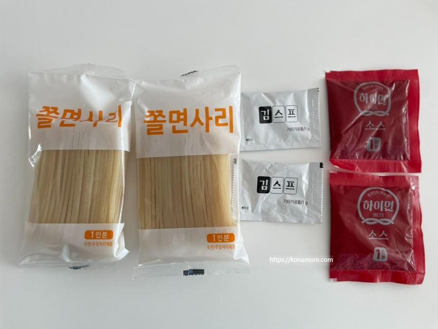 조리법은 정말 간단해요. 면만 삶아서 헹군 후 그릇에 담아 소스 뿌려서 비벼 드시면 됩니다.