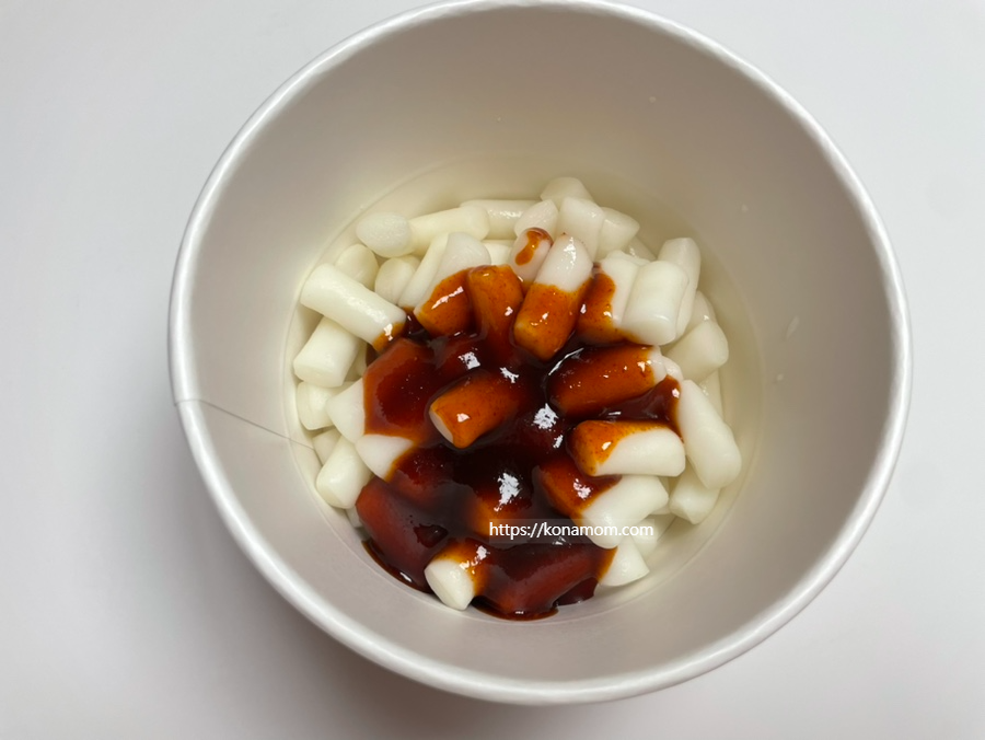 떡, 소스를 떡볶이 용기에 넣어 줍니다.