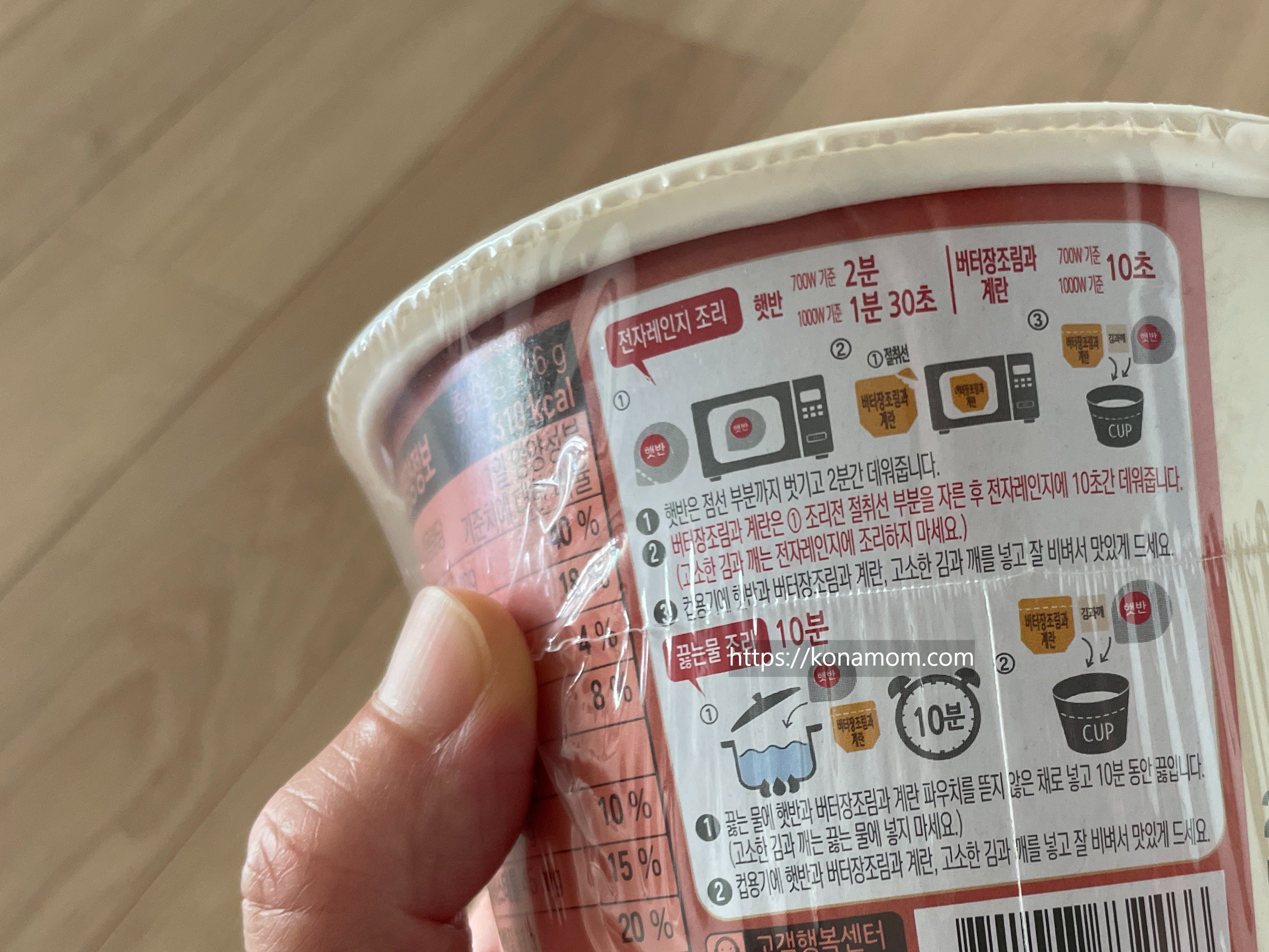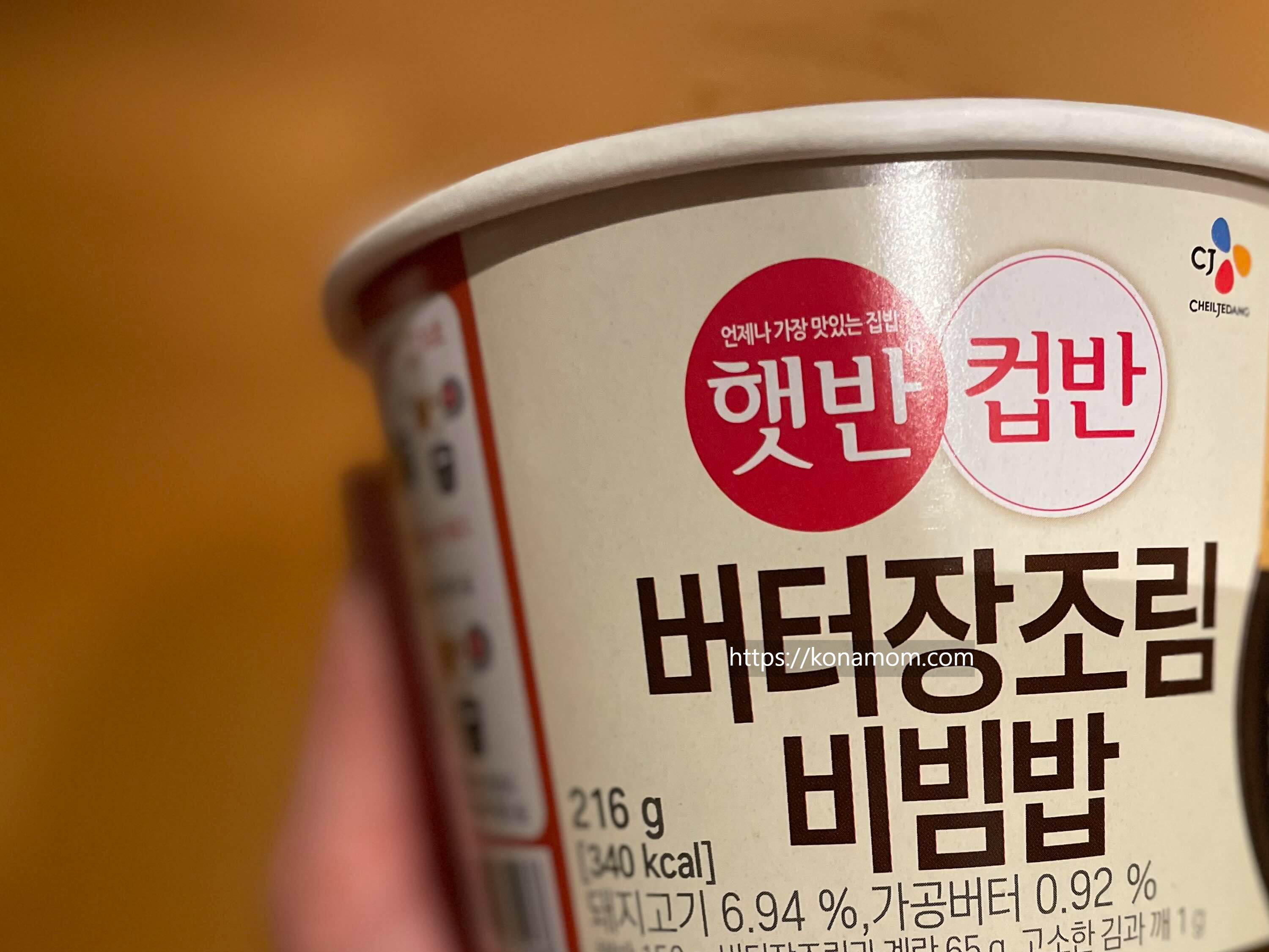 외식을 좋아해서 잘 먹는 코나지만 마땅한 식당이 없는 곳이라거나 늦게까지 놀고 간단하게 먹고 바로 자야 할 때면 이 컵반 버터장조림 비빔밥을 먹습니다.