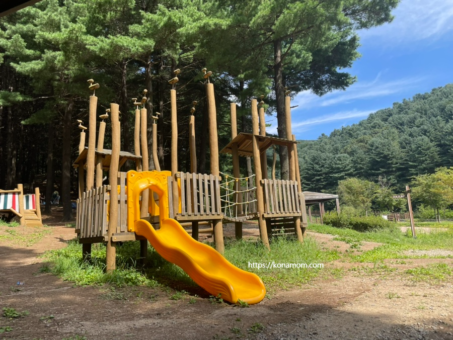 평소에는 나무를 만질 일이 잘 없는데, 나무를 만지고 타고~ 그리고 정말 나무가 둘러싸여 있는 숲 속 안에 있는 놀이터라서 아이들은 물론 어른들도 휴식하기 좋은 장소였습니다.