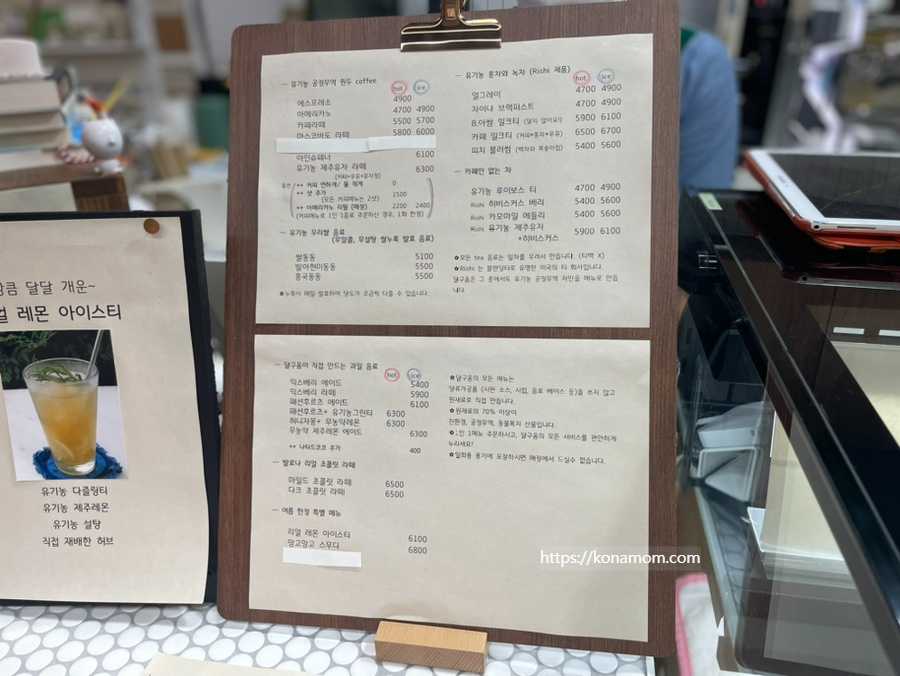 다른 음료들도 유기농 재료들을 사용한 것이라 군포 수리산 근처 아이들이랑 방문하기도 좋은 곳이었습니다.