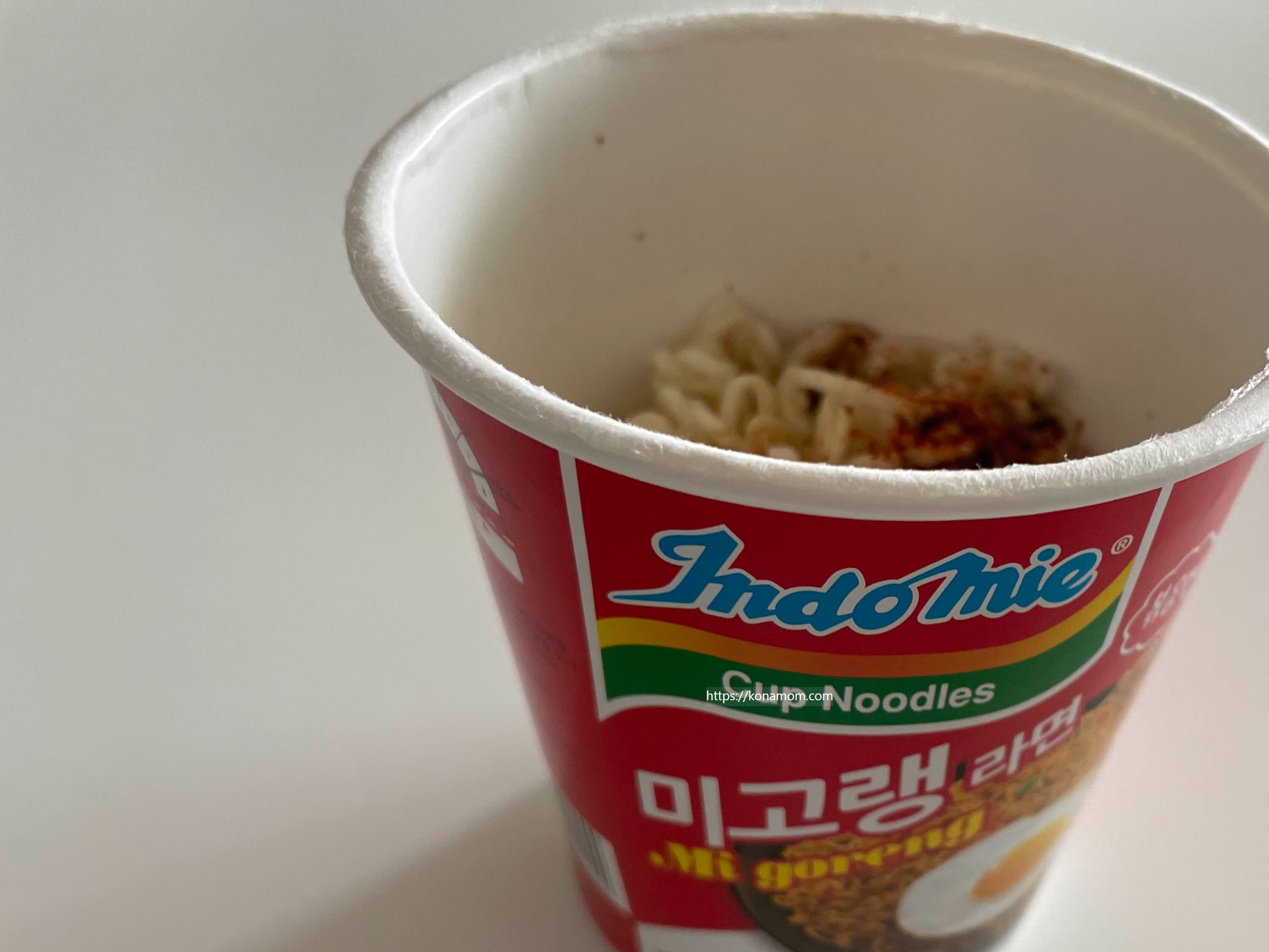 가끔 매콤한 것이 먹고 싶을 때가 있어서 매운 거 먹고 싶다는 얘기를 자주 하다 보니 코나 아빠가 편의점에서 사다준 인도미 미고랭 라면을 먹어 봤어요.
