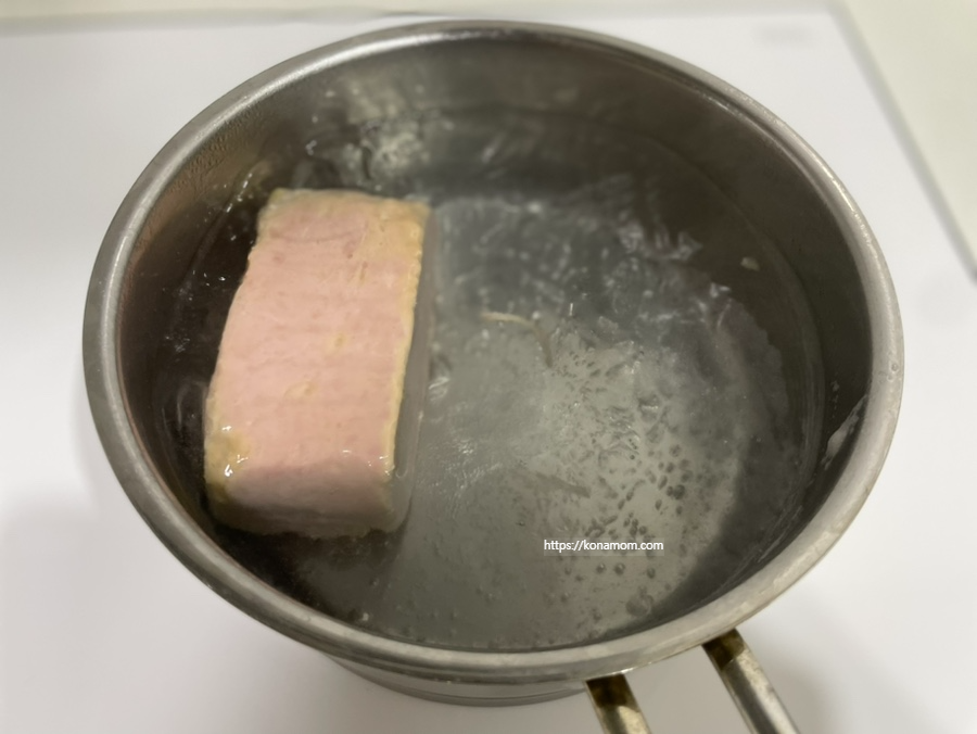 스팸은 끓는 물에 한번 데치고 씻어서 썰고 감자는 끓는 물에 소금 반티스푼 넣고 2분 정도 끓인 다음 물기를 빼줍니다.(물기가 많으면 볶을 때 많이 튑니다)