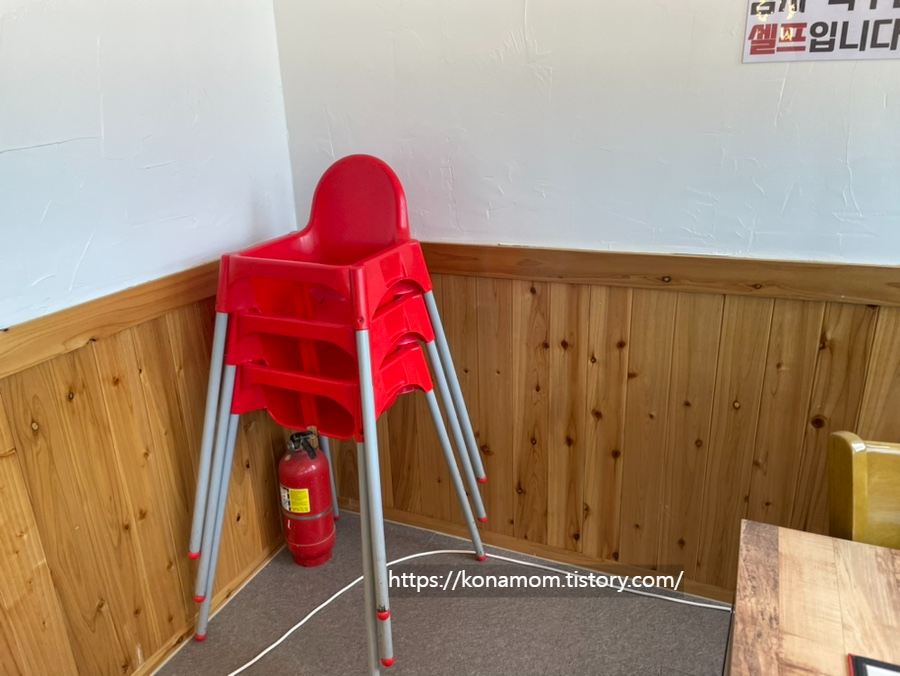 추가 육수, 반찬은 셀프로 가져다 드실 수 있고 전자레인지, 유아의자도 준비되어 있어서 물왕저수지 아이와 방문하기 괜찮은 식당인 것 같습니다.
