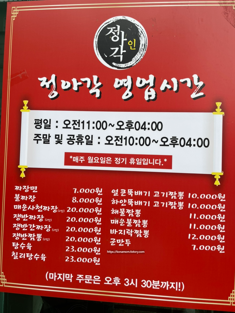 시흥 유명한 짬뽕 정아각 본점 메뉴