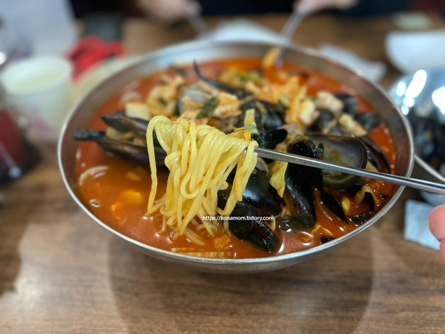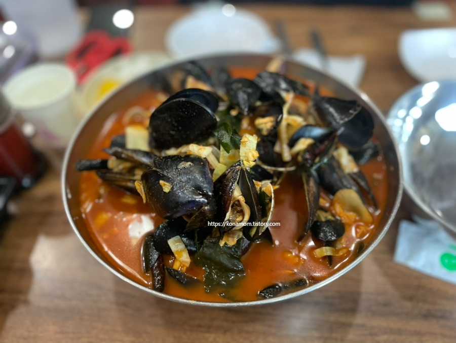 홍합이 정말 푸짐하게 들어가 있고 미역이 들어가서 그런지 국물맛이 더 풍미가 있었습니다.