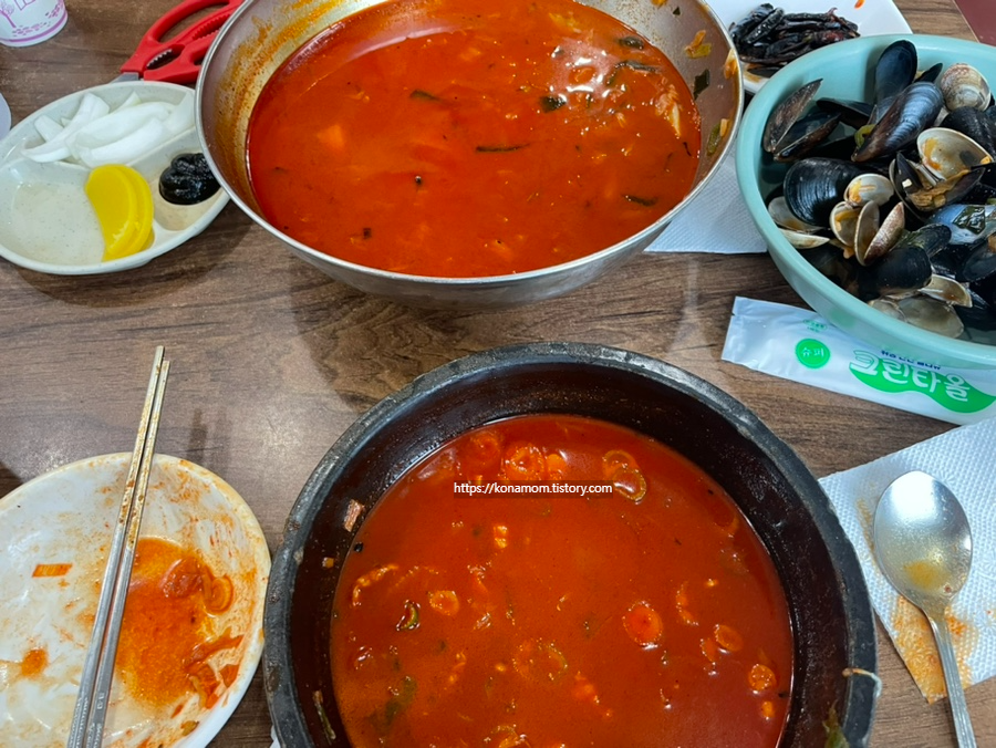 홍합이 얼마나 많이 들어갔는지 두 번째 그릇인데도 저만큼 담아졌습니다.