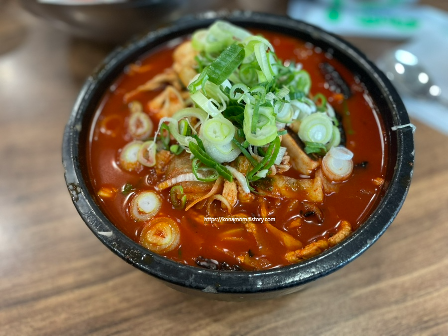 저희는 줄 서 있을 때 매운 불짬뽕, 얼큰 뚝배기 고기짬뽕 주문했습니다.