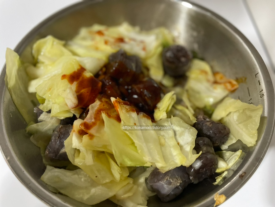 양배추가 냉장고에 있어서 추가로 더 넣었더니 조금더 푸짐해진 느낌입니다.