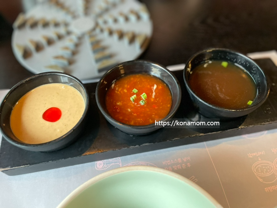 소스는 세 가지 종류인데, 개인적으로는 가운데 칠리소스가 가장 맛있었어요.