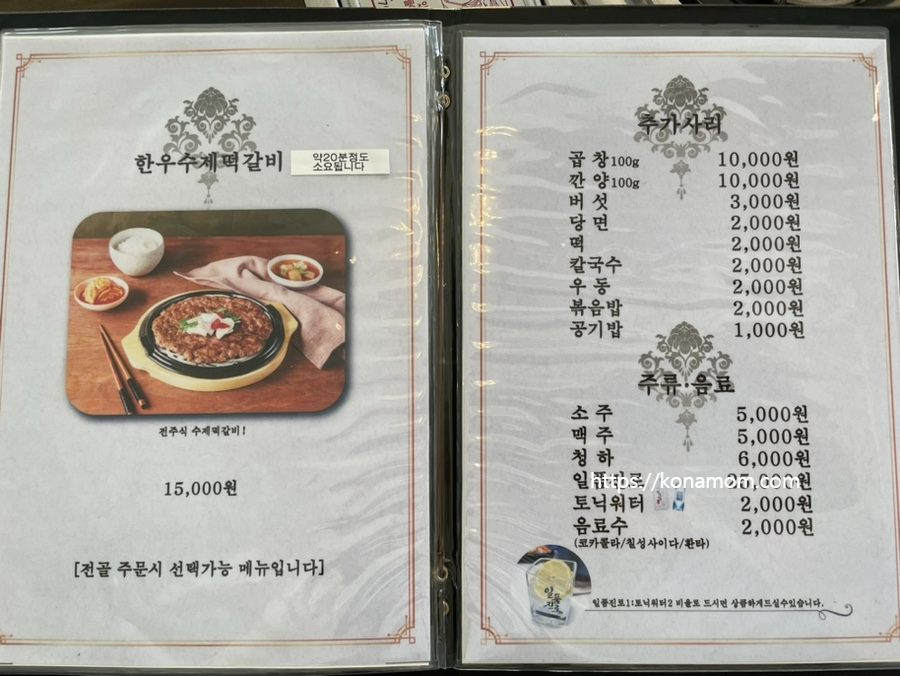 목감곱창전골 맛집 한제소곱창전골에는 곱창전골 전문점 답게 소곱창전골 메뉴가 있고, 소고기 전골, 수유ㅠㄱ, 소곱창튀김 등의 메뉴가 있고, 아이들이랑 같이 왔을 때 먹을 수 있는 떡갈비 메뉴도 있습니다.