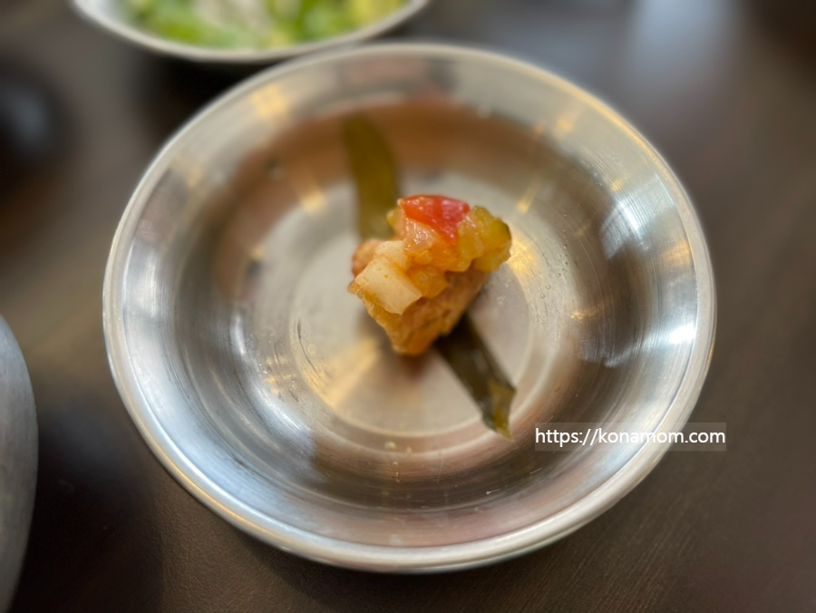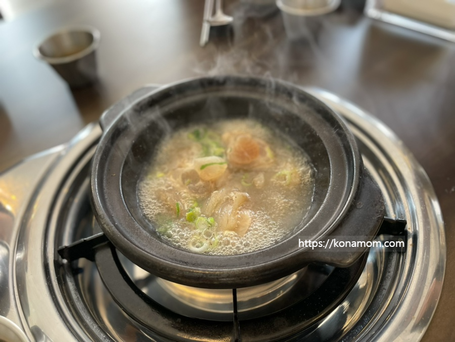 주문하고 나서 먼저 도가니탕이 나왔는데요, 국물이 진하고 도가니는 쫄깃하게 씹히는 맛이 좋았어요.