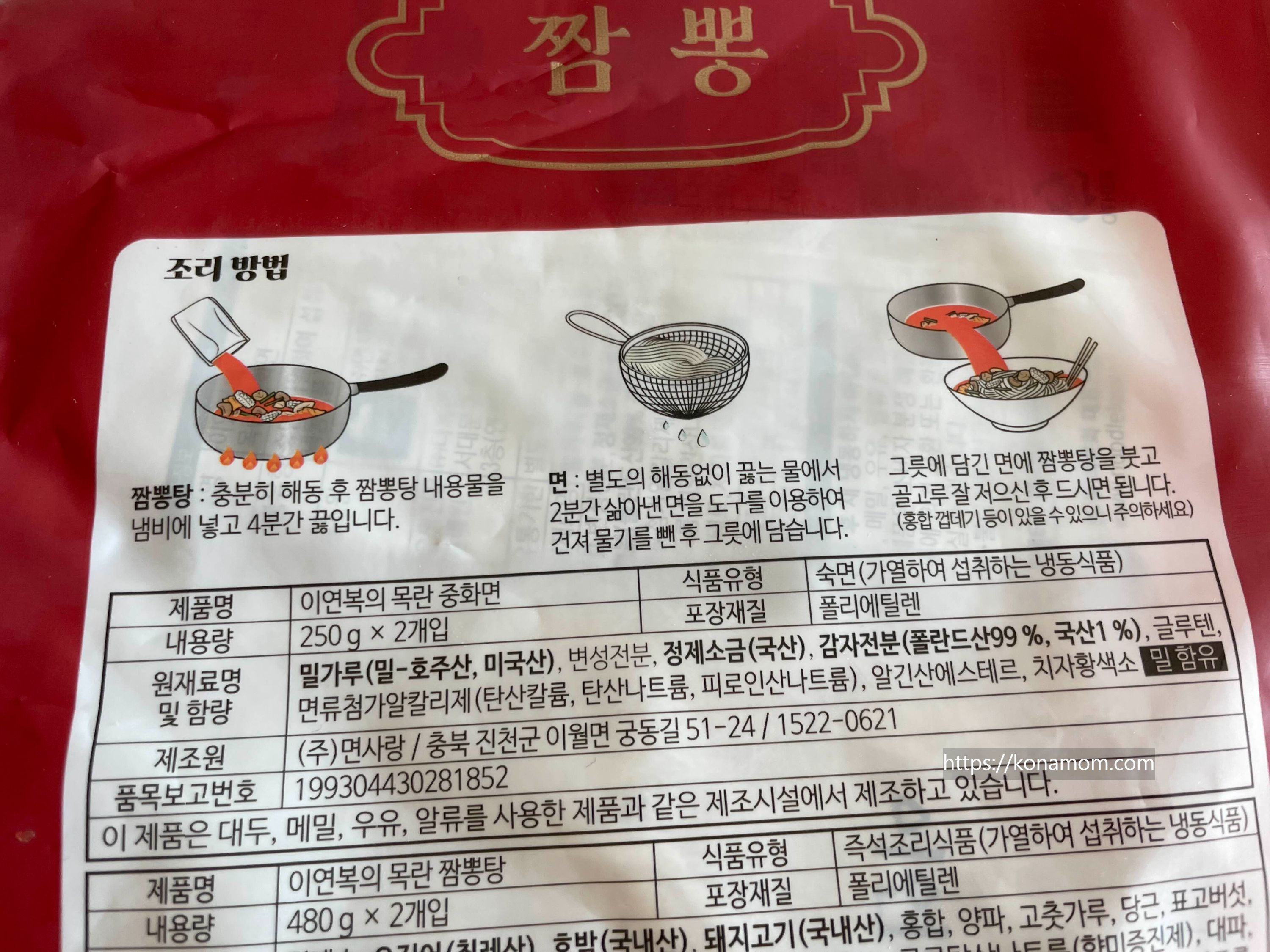 마켓컬리에서 냉동으로 배송되는 이연복의 목란 짬뽕은 냉동식품이에요.