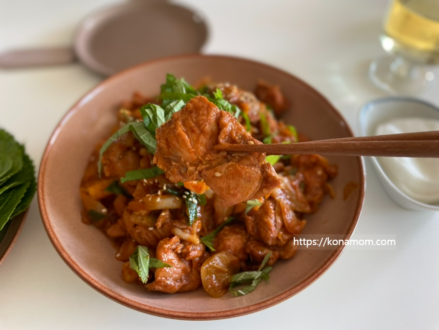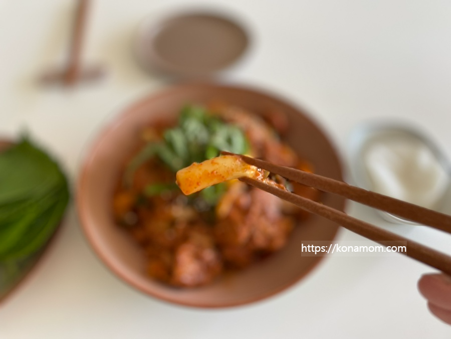 두툼한 살코기와 감칠맛이 일품인 양념에 떡까지 있어서 맛있는 주말 한 끼 간단하게 준비해서 먹을 수 있었습니다.