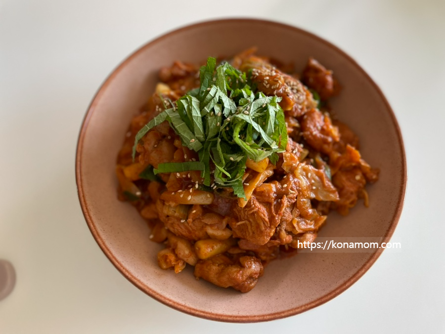 닭갈비 소스만으로도 매콤하지만 청양고추를 넣었더니 매콤함이 한층 더 올라와 깔끔하게 먹었습니다.