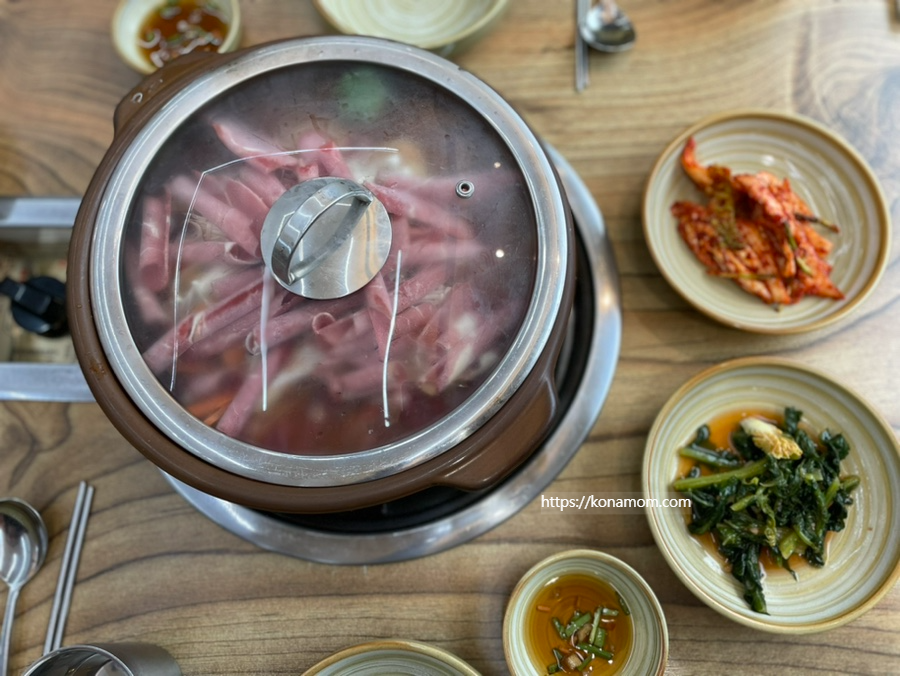 샤브샤브용 고기 같은 소고기도 들어가서 얼큰한 샤브샤브 먹는 느낌도 있습니다.