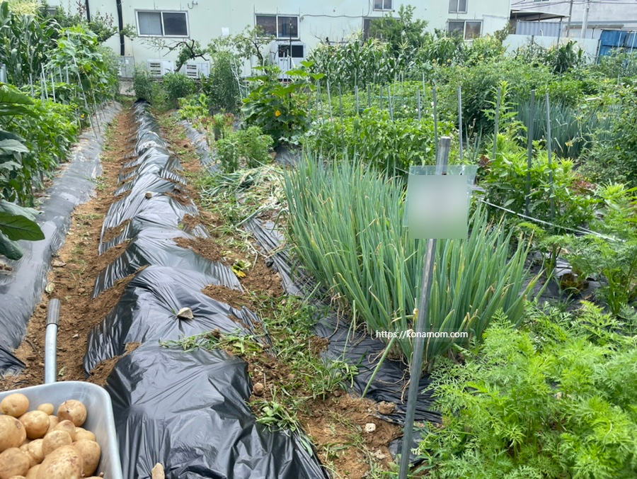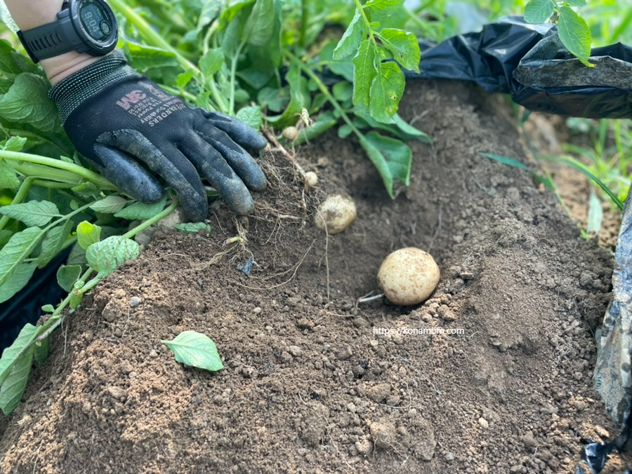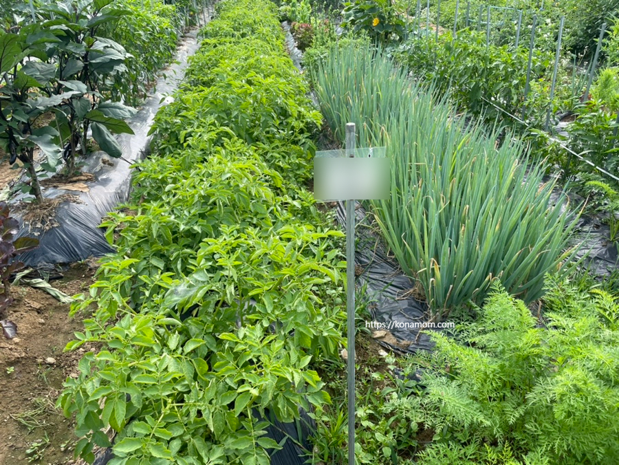 감자는 수확까지 기간이 짧은 편이라 봄에 심어서 보통 6월 중순이나 말경에 수확하는데요(7월에 수확하는 감자도 있고 가을에 수확하는 가을감자도 있다고 합니다.), 다음주부터 장마라고 해서 장마가 지나면 감자가 썩을 수 있어서 계획보다 일찍 캐기로 했습니다.