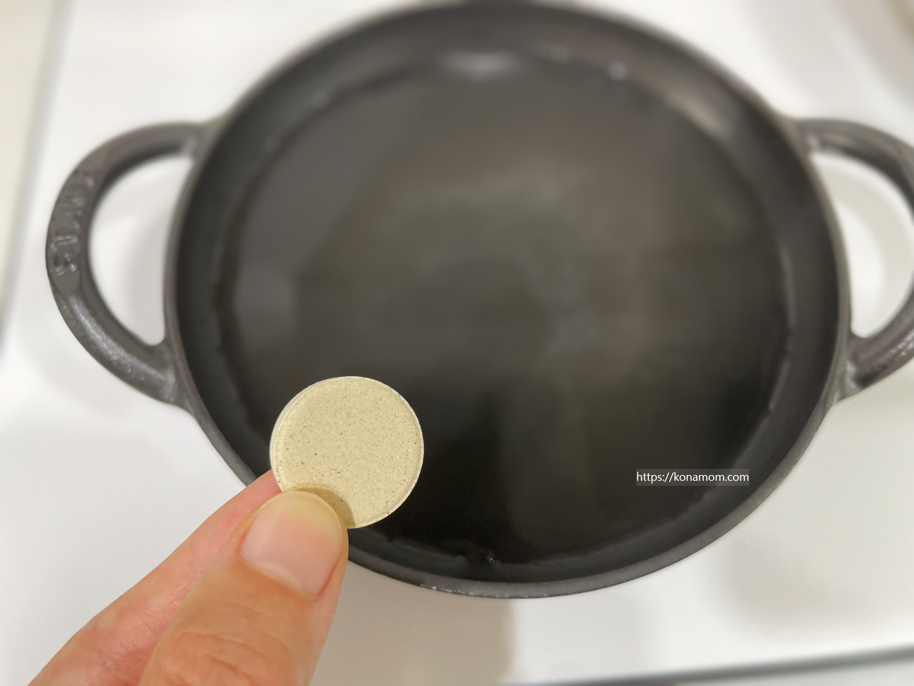 아이 국 끓일 땐 스타우브 베이비웍을 애용하는데요. 물 350~400ml(종이컵 두 컵) 붓고 코인육수 하나 넣어 줍니다.