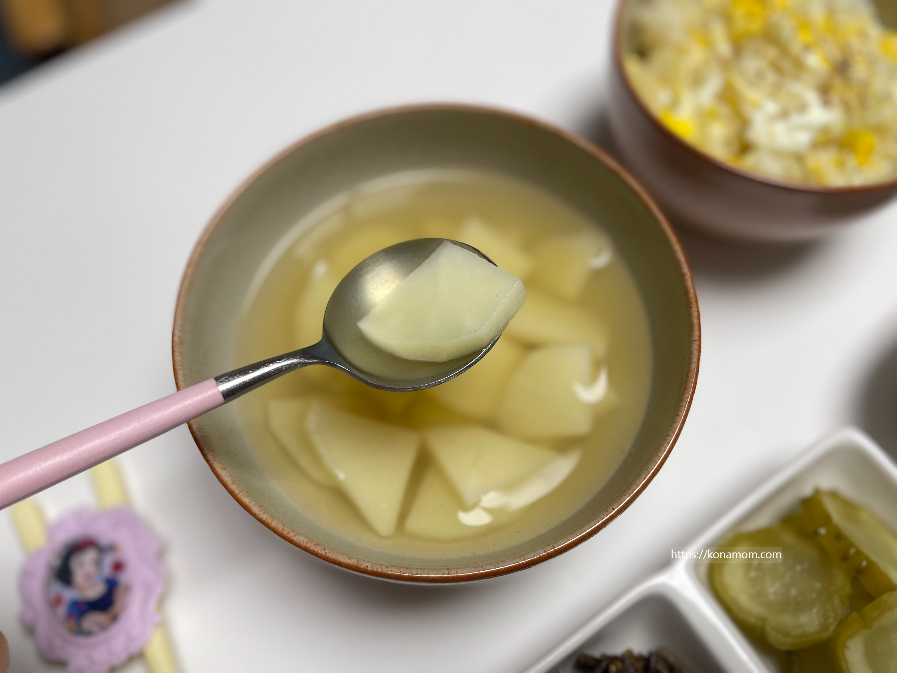 포슬포슬하니 맛도 영양도 좋아서 아이 간단 국 끓이기로 이만한 게 없습니다.