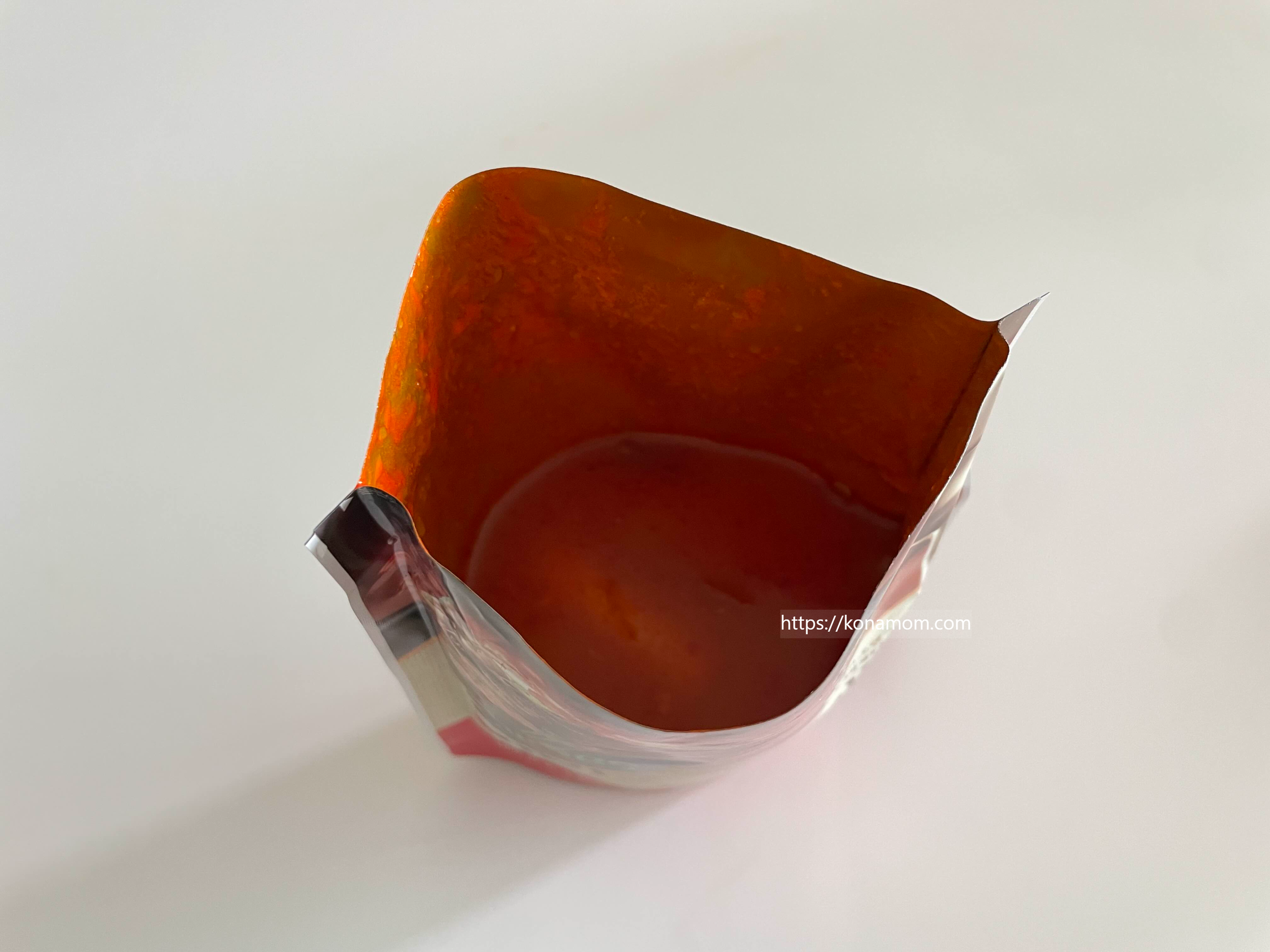비비고 육개장 팩을 뜯으면 이렇게 진한 국물이 보입니다.